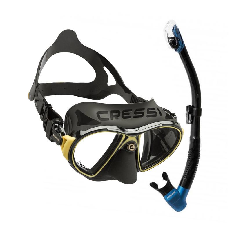 Jual Combo Mask Cressi Zeus Snorkel Cressi Omega Ultra Dry Blue