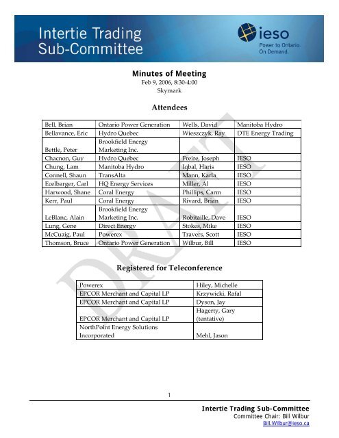 Minutes Of Meeting Attendees Registered For Teleconference Ieso