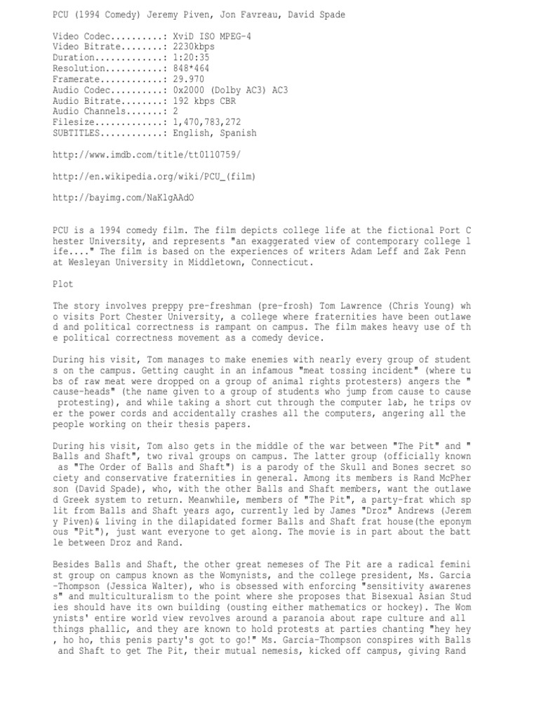 Pcu 1994. Pcu 1994 cast and crew credits including actors actresses directors writers and more. Pcu movie clip balls and shaft password scene duration. With jeremy piven chris young megan ward jon favreau.