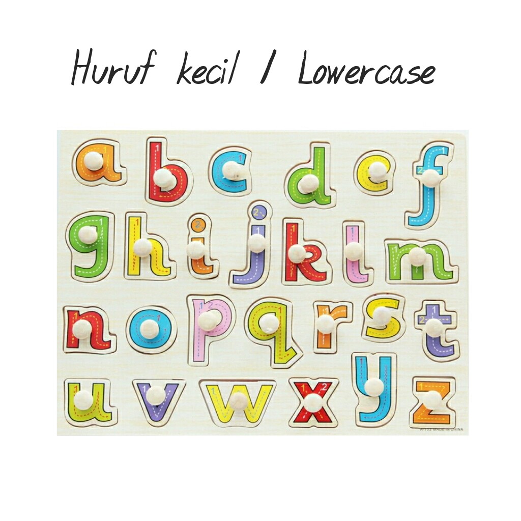 Mainan Anak Puzzle Chunky Kayu Huruf Kecil Abjad Abc Bahasa