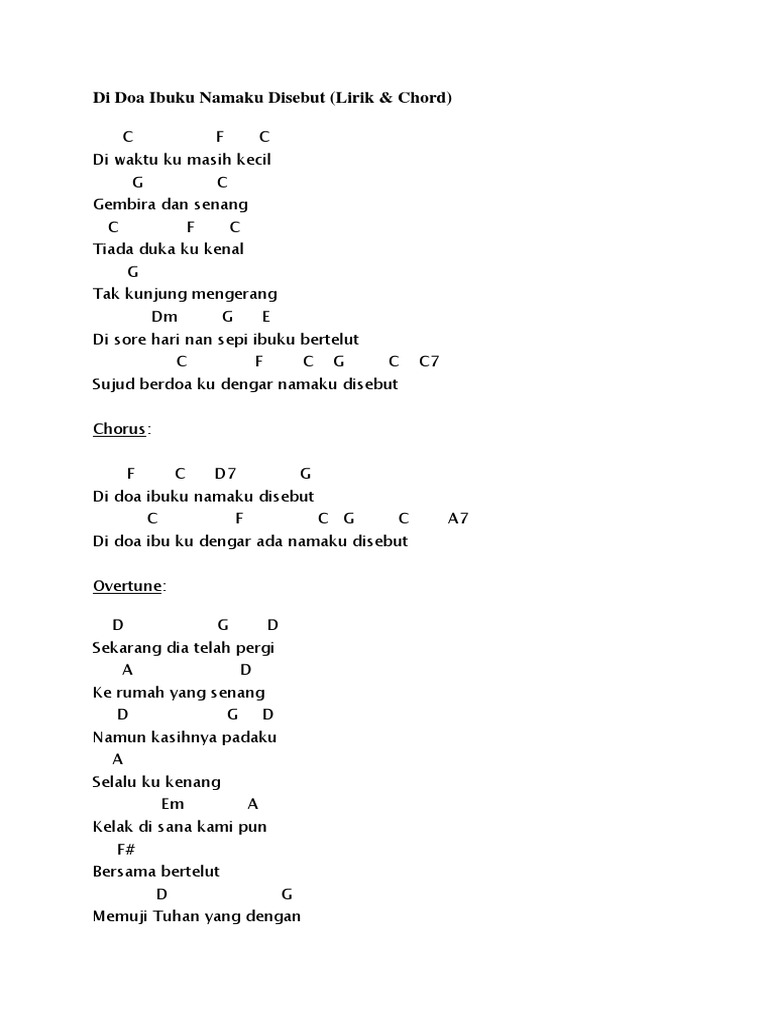 Di Doa Ibuku Namaku Disebut Lirik Chord