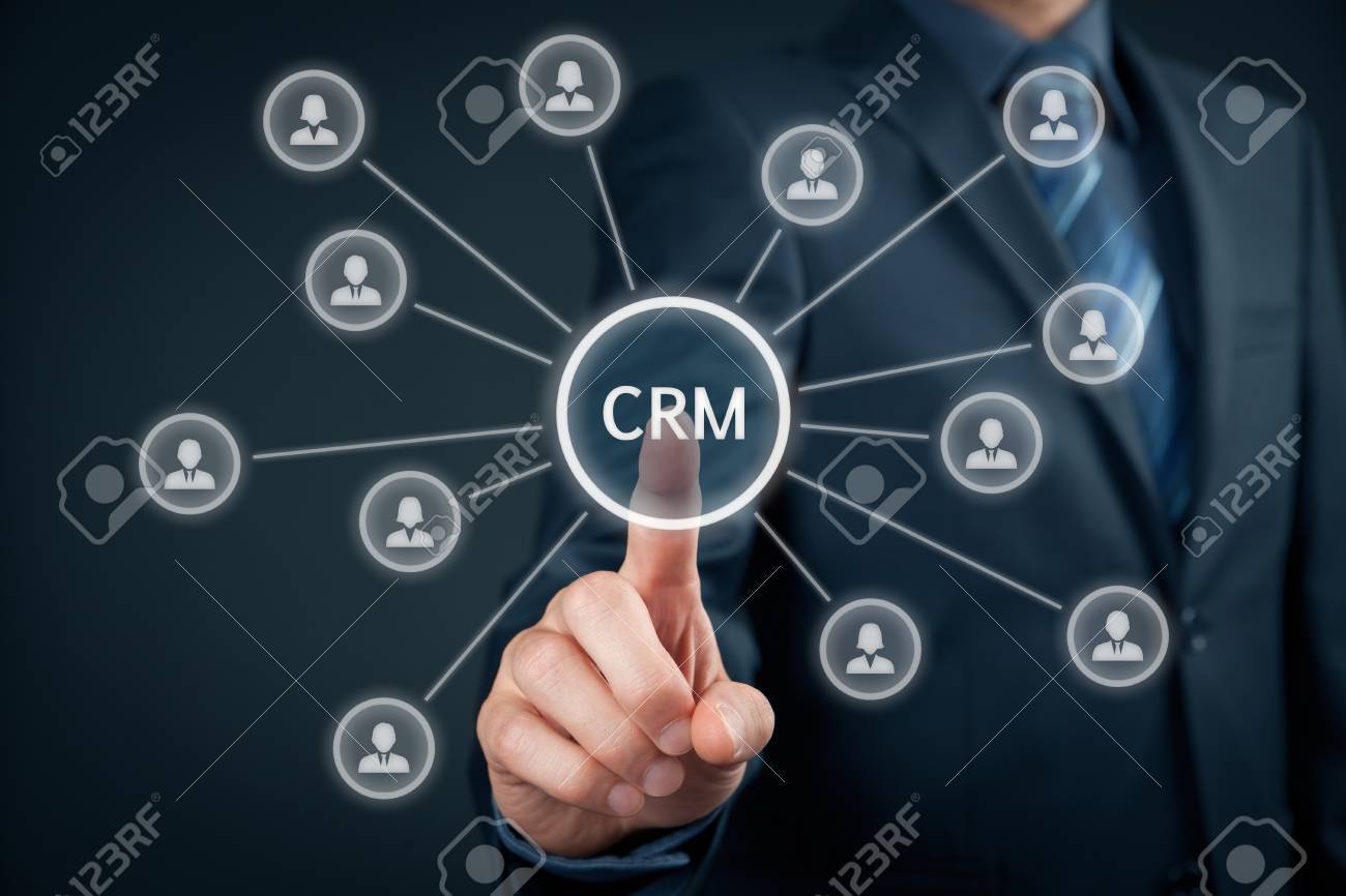 Customer Relationship Management Concept Man Selecting Crm Stock