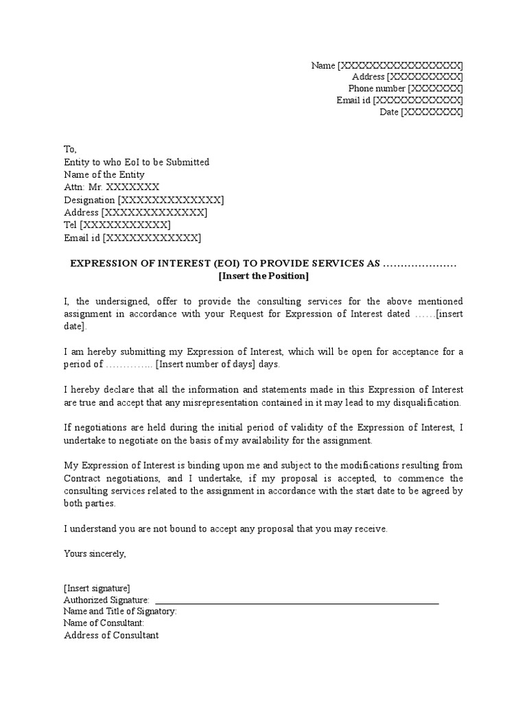 Expressions Of Interest Letter Template