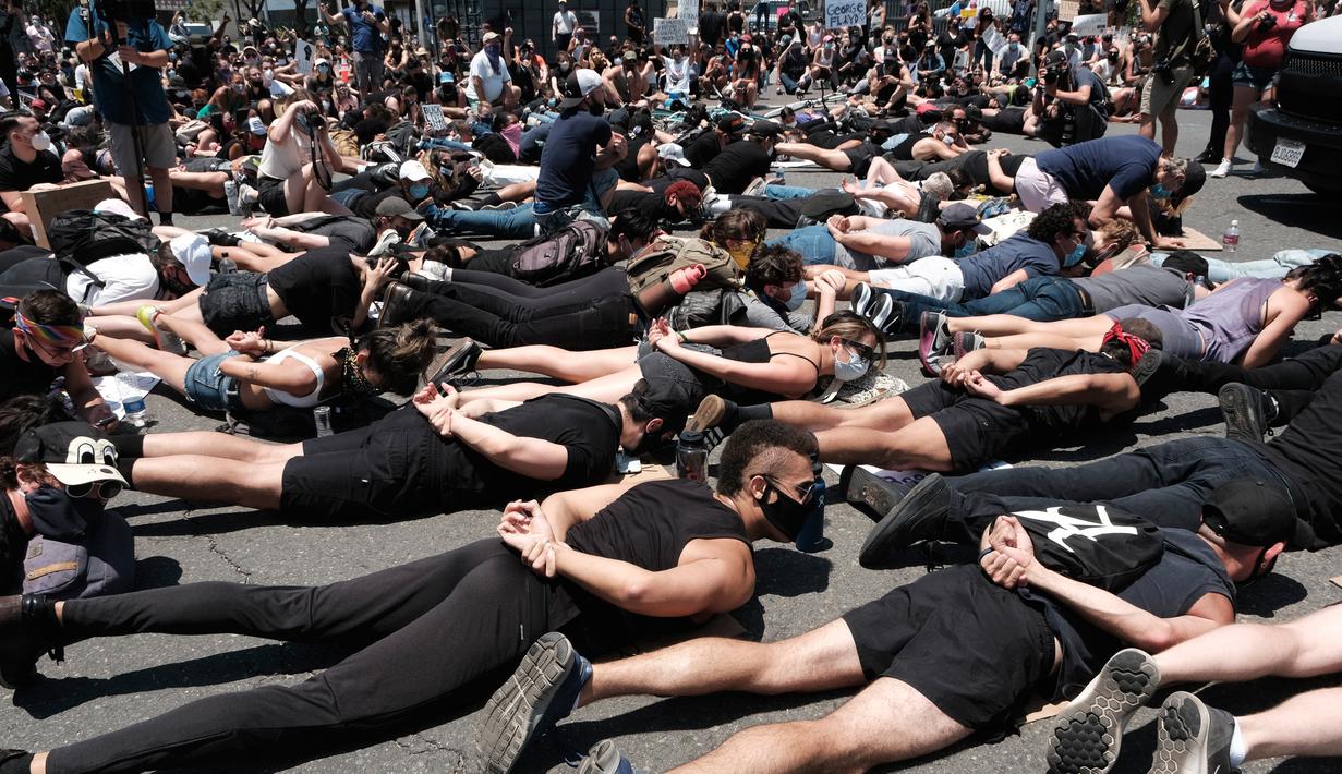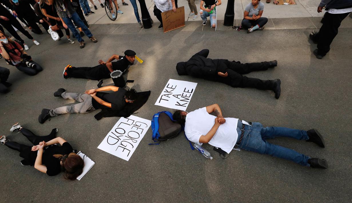 Foto Tiarap Di Jalan Aksi Demonstran Tiru Momen Terakhir George Floyd Global Liputan6 Com