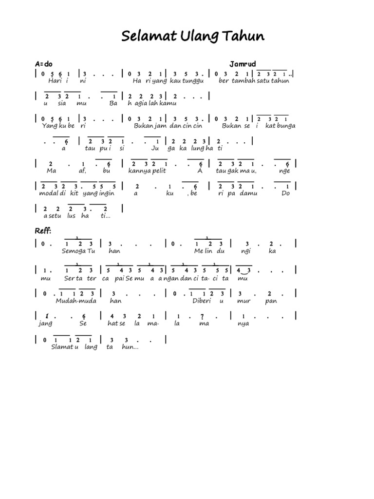 Not Angka Lagu Selamat Ulang Tahun Jamrud