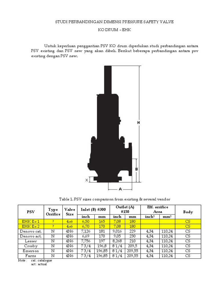 Studi Perbandingan Dimensi Pressure Safety Valve