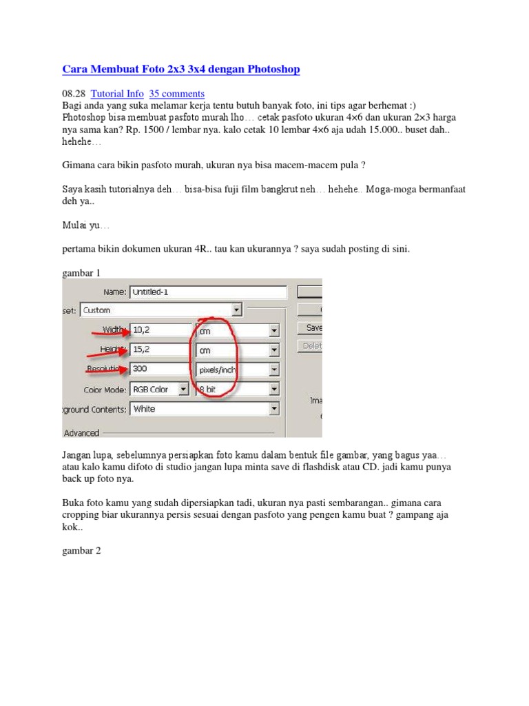 Cara Membuat Foto 2x3 3x4 Dengan Photoshop Docx Document