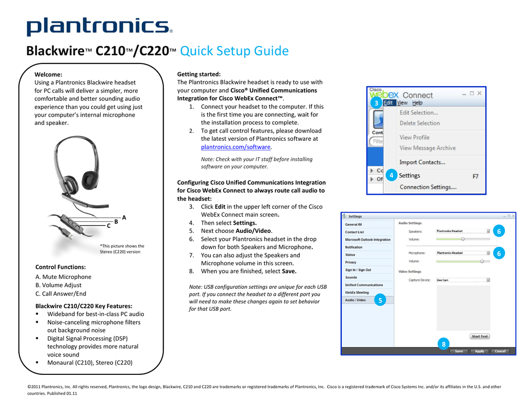 Blackwire C210 C220 Cisco Uc Int Connect Quick Start Guide Manualzz