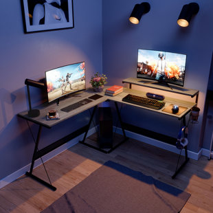 Home Office Gaming Desk Pro Z Shaped Pc Computer Table For Gamer Pro Gaming Desks Workstation With Rgb Led Lights Headphone Hook And Adjustable Pads Black Health Smart Homes