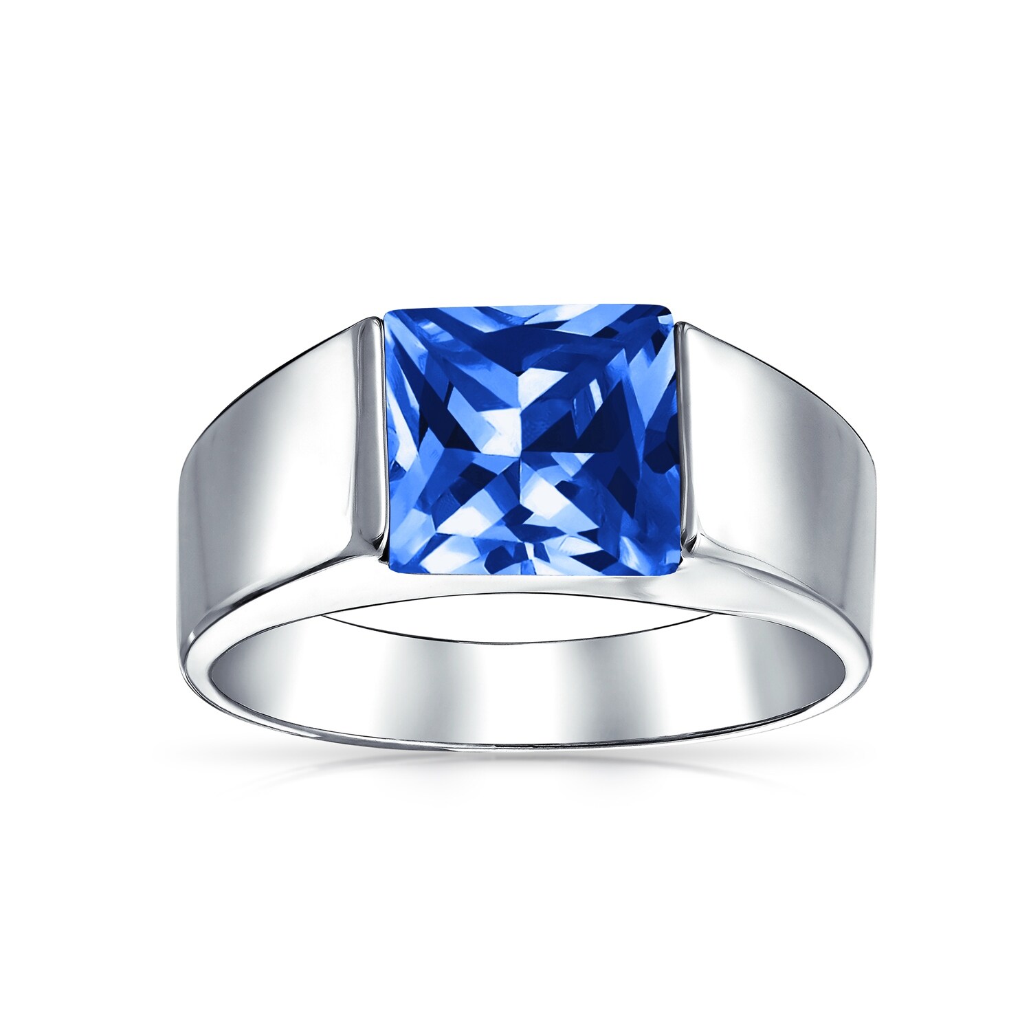 Shop 3ct Princess Cut Imitation Blue Sapphire Aaa Cz Engagement Mens Ring Overstock 17989049