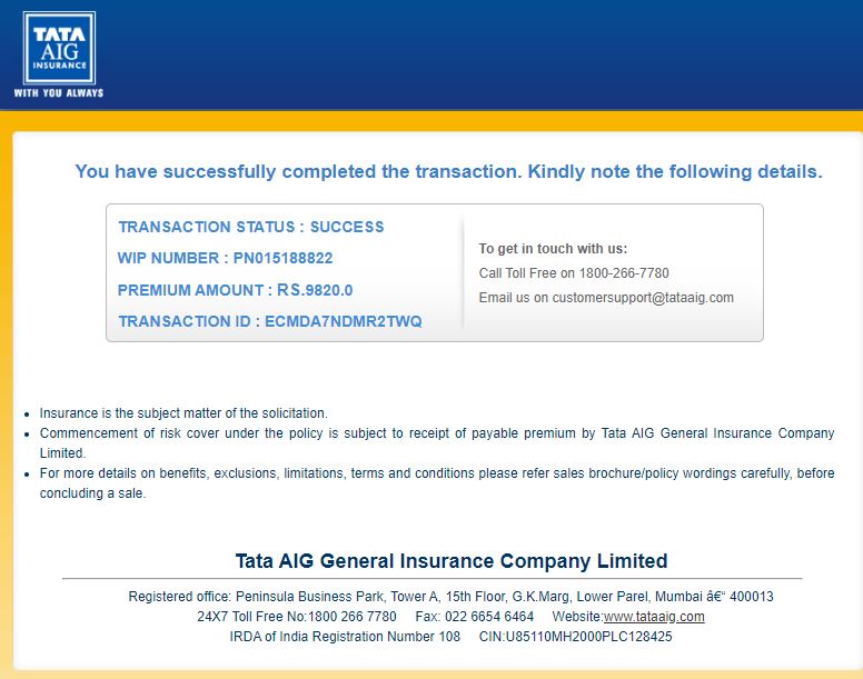 Tata Aig Insurance Renewal