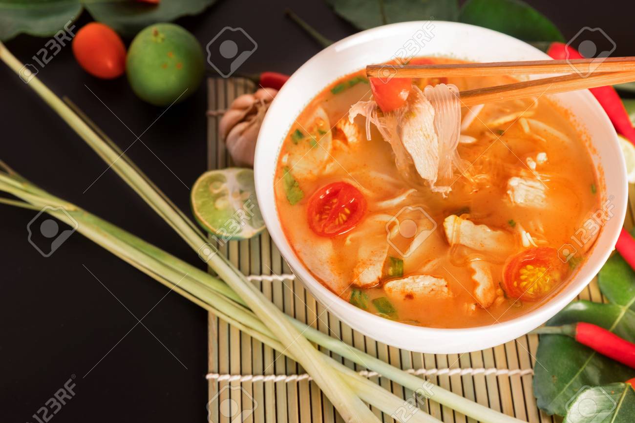 Tom Yum Gai Or Spicy Tom Yum Soup With Chicken Authentic Thai Stock Photo Picture And Royalty Free Image Image 105423135