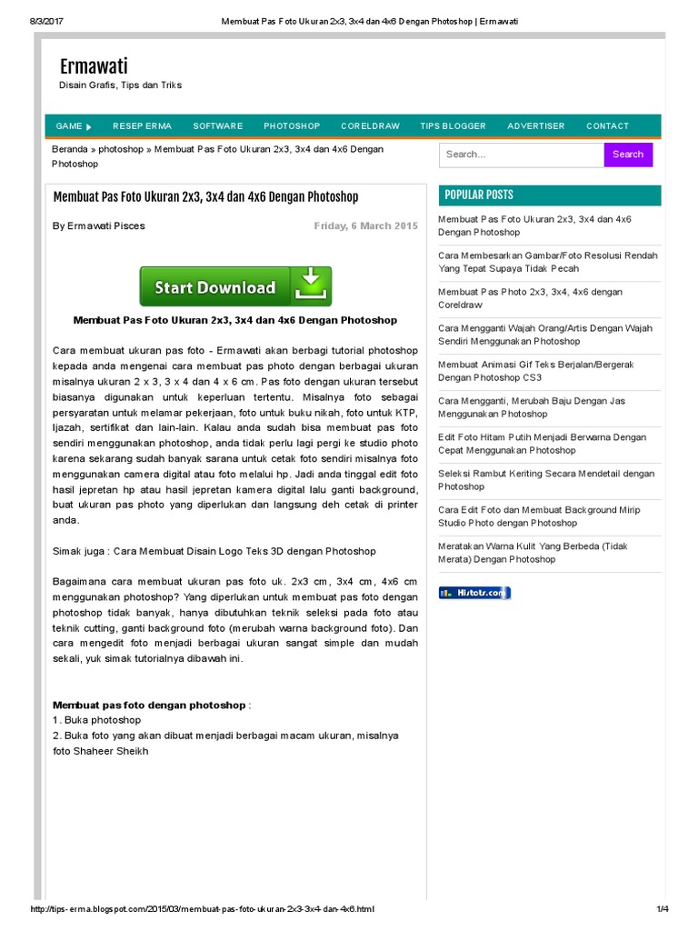 Membuat Pas Foto Ukuran 2x3 3x4 Dan 4x6 Dengan Photoshop Ermawati