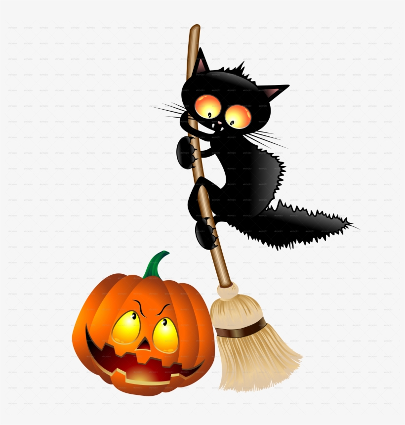 Cartoon Cat On Witch Broom Png Cartoon Halloween Cat Png 5000x5000 Png Download Pngkit
