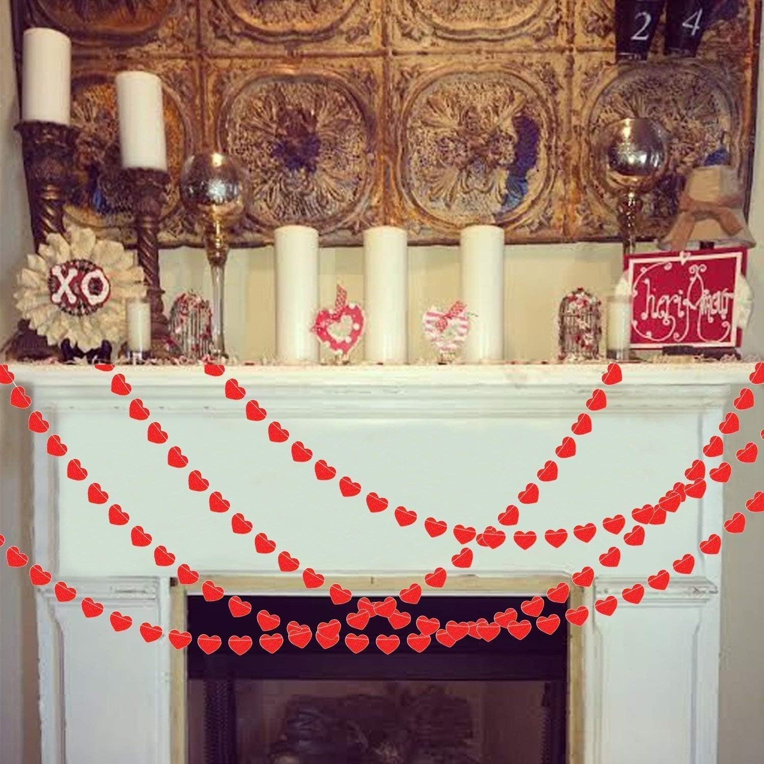 Bridal Shower Wall Wedding Party Decorations Home Mantel Decor Romantic Valentines Day Decoration Valentine Garland Engagement Red Heart Garland Banner Bunting 26 2 Ft Total Partyprops Pack Of 2 Banners Garlands
