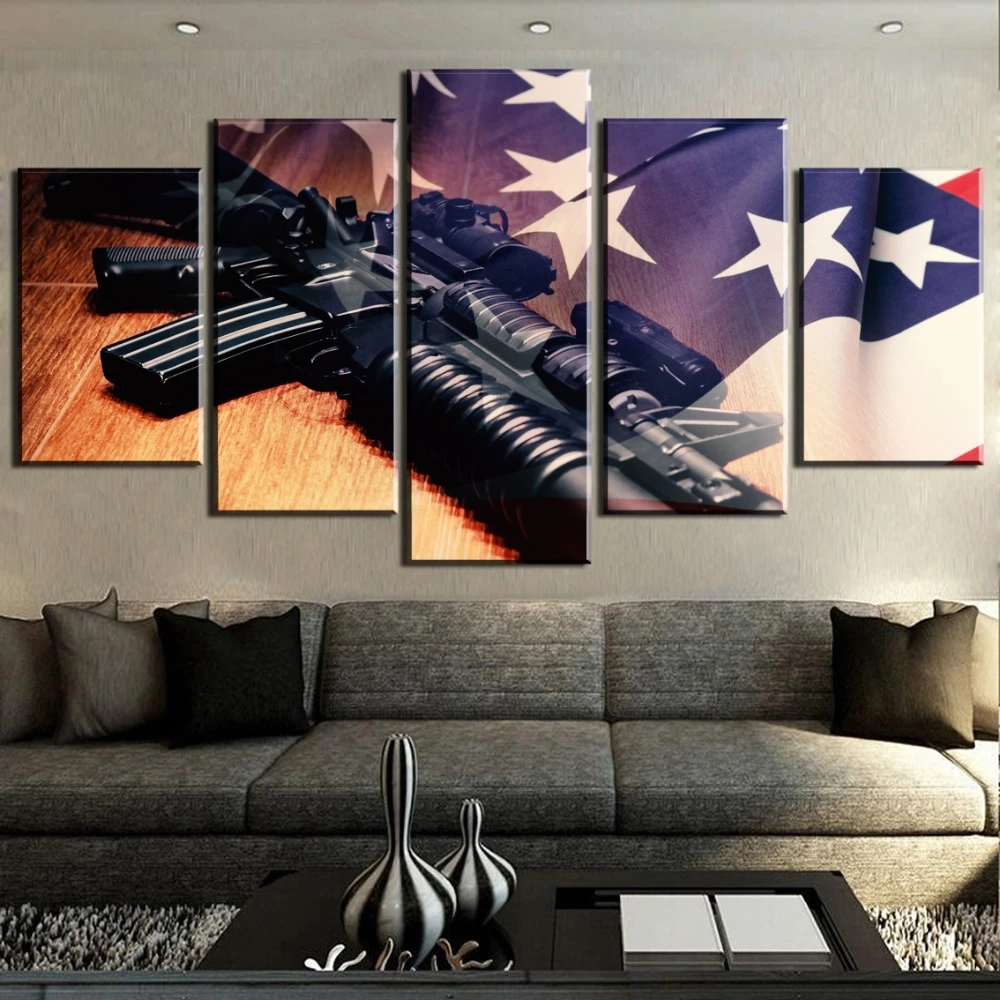 Hd Print 5 Panel Machine Gun American Flag Modern Decorative Paintings On Canvas Wall Art For Home Decorations Wall Decor Painting Calligraphy Aliexpress