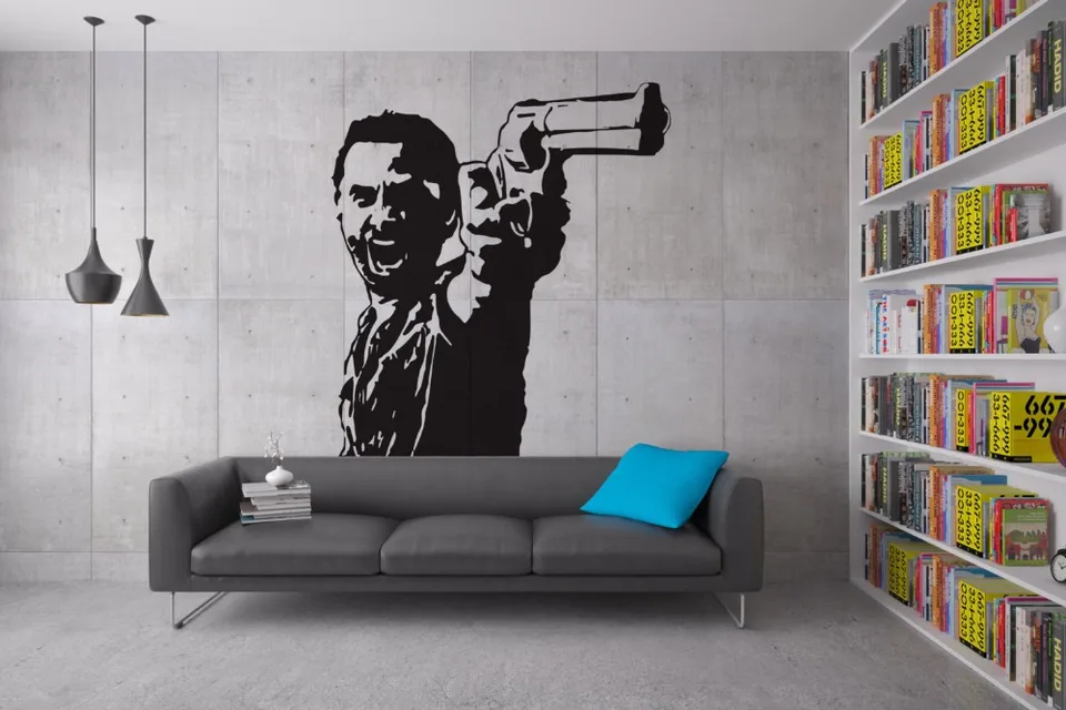 Angry Man With Gun In Hand Art Designed Wall Stickers Home Special Decor Vinyl Cool Decorations Wall Murals Man Pattern Wm 386 Decorative Vinyl Wall Muraldecoration Wall Aliexpress