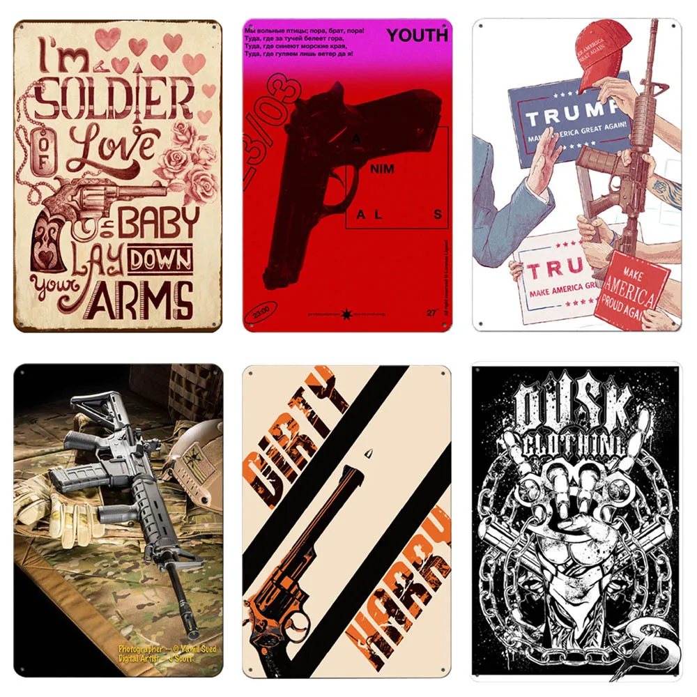 Gun Poster Vintage Plaque Metal Plates Pub Casino Wall Decor Pistol Sign Wall Stickers Art Poster Retro Home Decor 20x30cm Plaques Signs Aliexpress