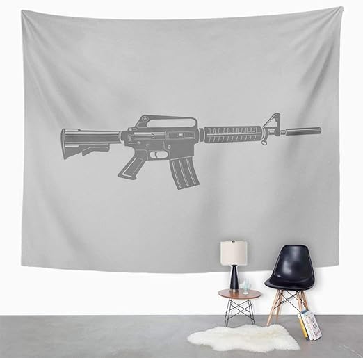 Hisoyz Wall Tapestry Black And Assault Rifle Illustrations Tapestry Wall Hanging Home Decorations Mysterious For Bedroom Home 150x200cm Amazon Co Uk Kitchen Home