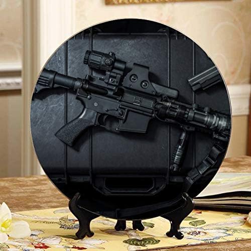 Amazon Com Kuneh Gun Enthusiasts Rifles Ceramic Plates Decor Party Decorations Plates Home Wobble Plate With Display Stand Decoration Household Ceramic Plate Decor Home Kitchen