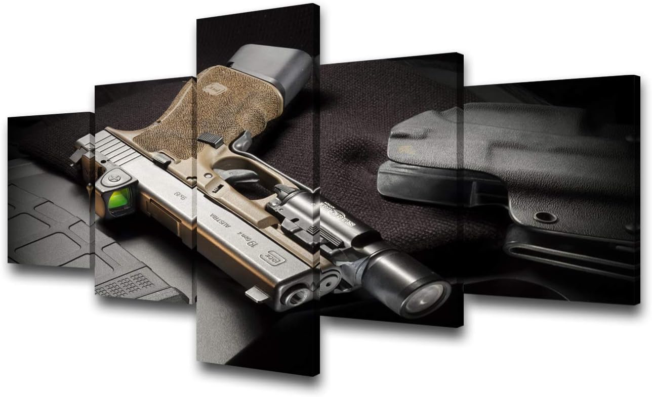 Amazon Com 5 Piece Canvas Wall Art Gun On Target Pictures For Living Room Premium Quality Paintings Weapon Artwork Modern Home Decorations Stretched And Framed Ready To Hang Posters And Prints 60