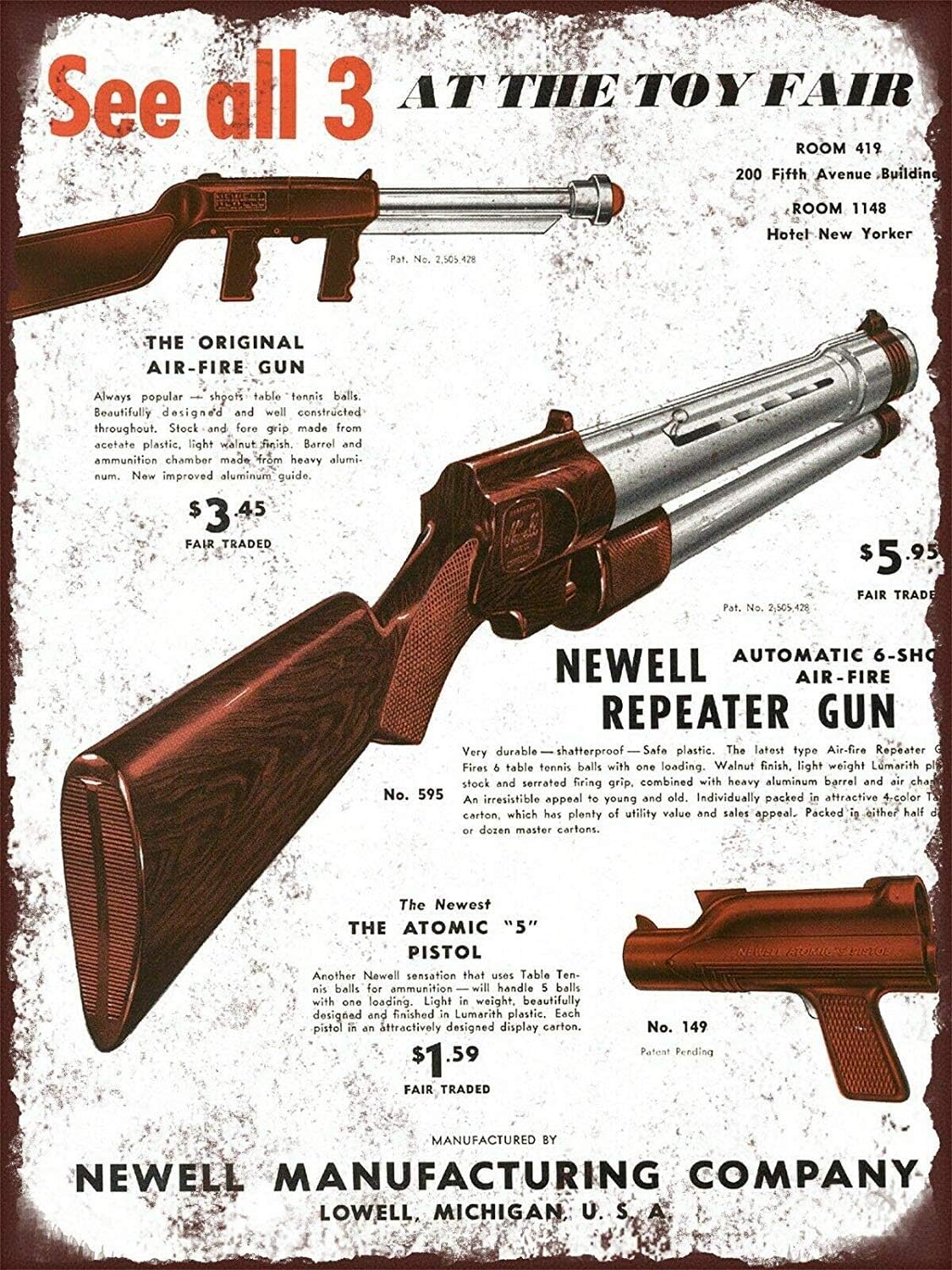 Yasmine 1951 Newell Toy Gun Air Fire Rifle Repeater Guns Pistol Metal Plaque Tin Sign Poster Art Cafe Club Pub Home Wall Decoration Amazon Co Uk Kitchen Home