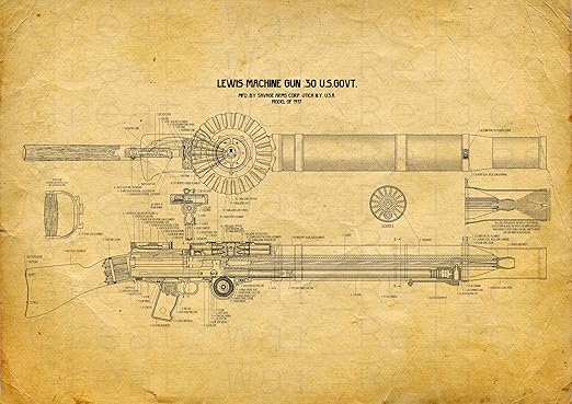 Upcrafts Studio Design Lewis Machine Gun Wall Art Poster Old Look Yellow Color Size 8 3x11 7 Inch First World War Military Decorations For Home Office Garage Cafe Bar Pub Amazon Ca
