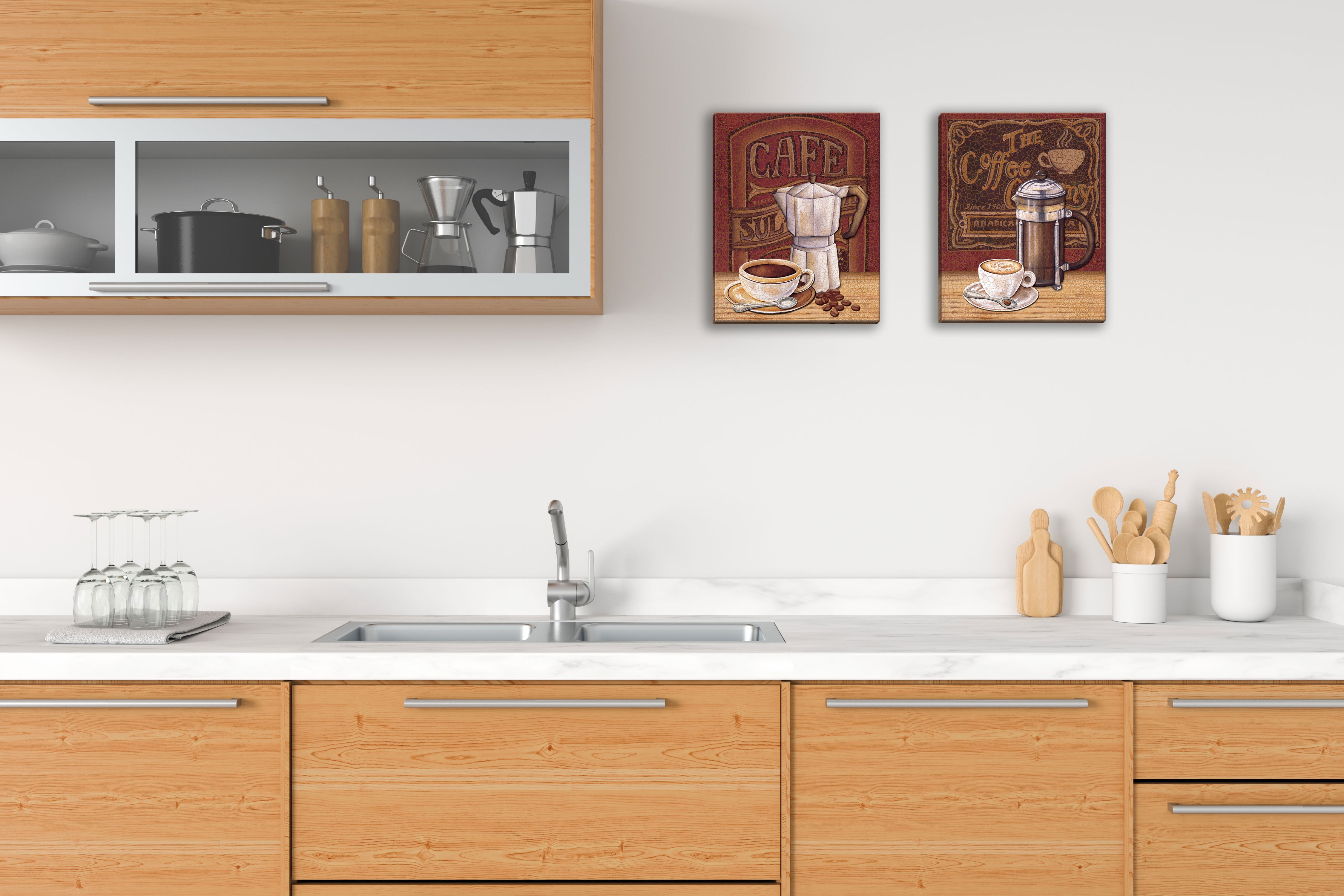 Gango Home Decor Retro Java Coffee Shop Cafe Signs Two Red 8x10in Hand Stretched Canvases Walmart Com Walmart Com