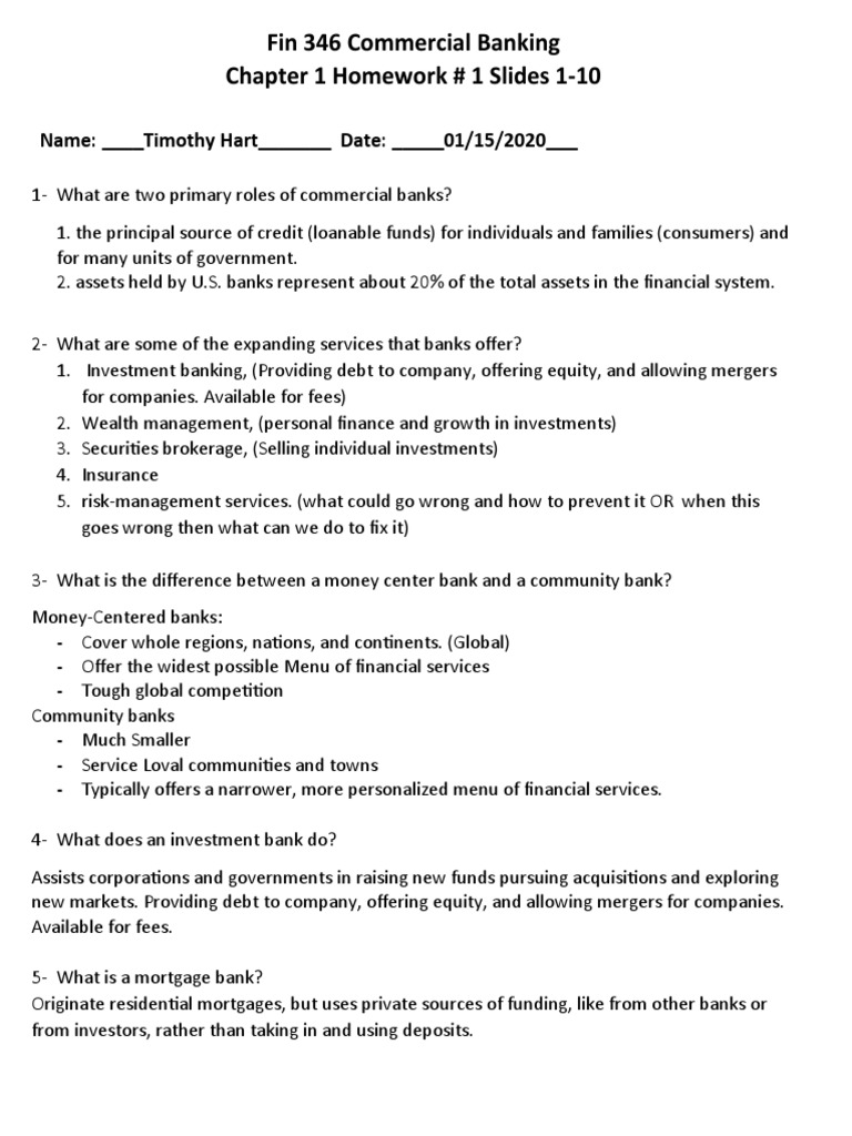 Commercial Banking Chp 1 Hw 1 Slides 1 10 Federal Deposit Insurance Corporation Banks Free 30 Day Trial Scribd