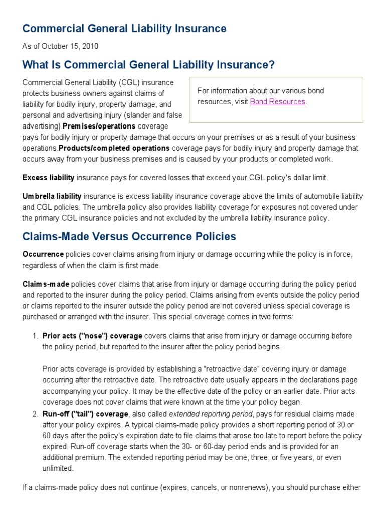 What Is Commercial General Liability Cgl Insurance