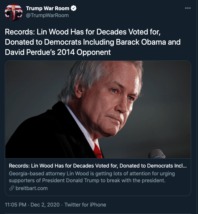 Trump Attorney Lin Wood Republicans Should Withhold Votes In Georgia