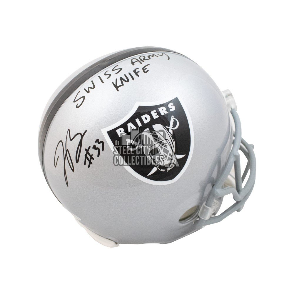 Lynn Bowden Swiss Army Knife Autographed Raiders Full Size Football Helmet Bas Coa Steel City Collectibles
