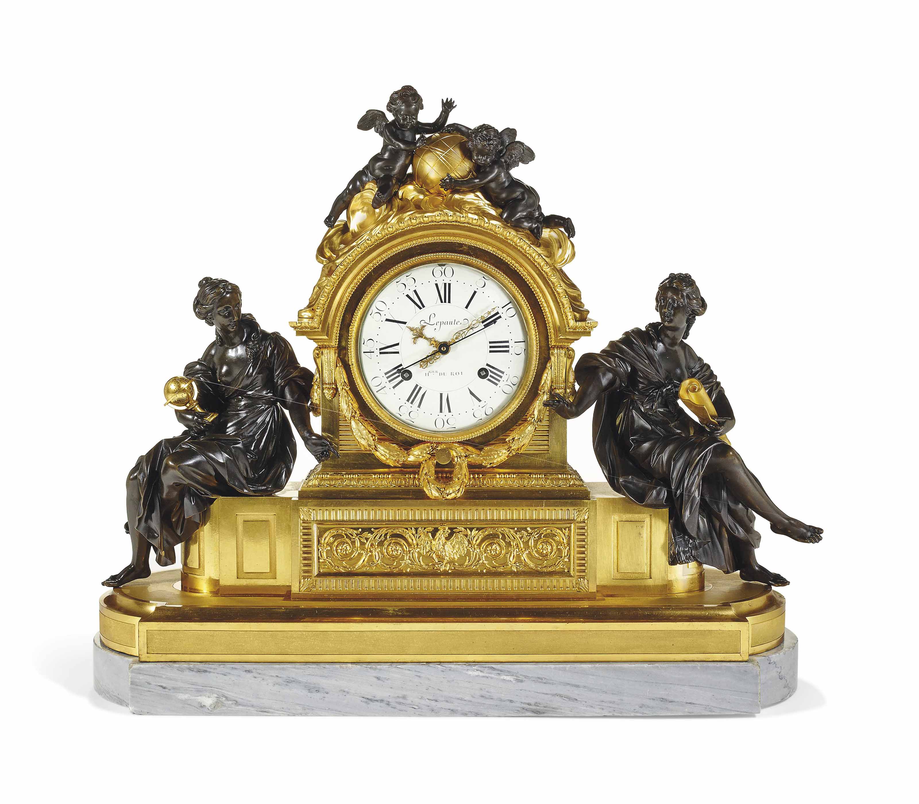 A Louis Xvi Ormolu And Patinated Bronze Striking Mantel Clock