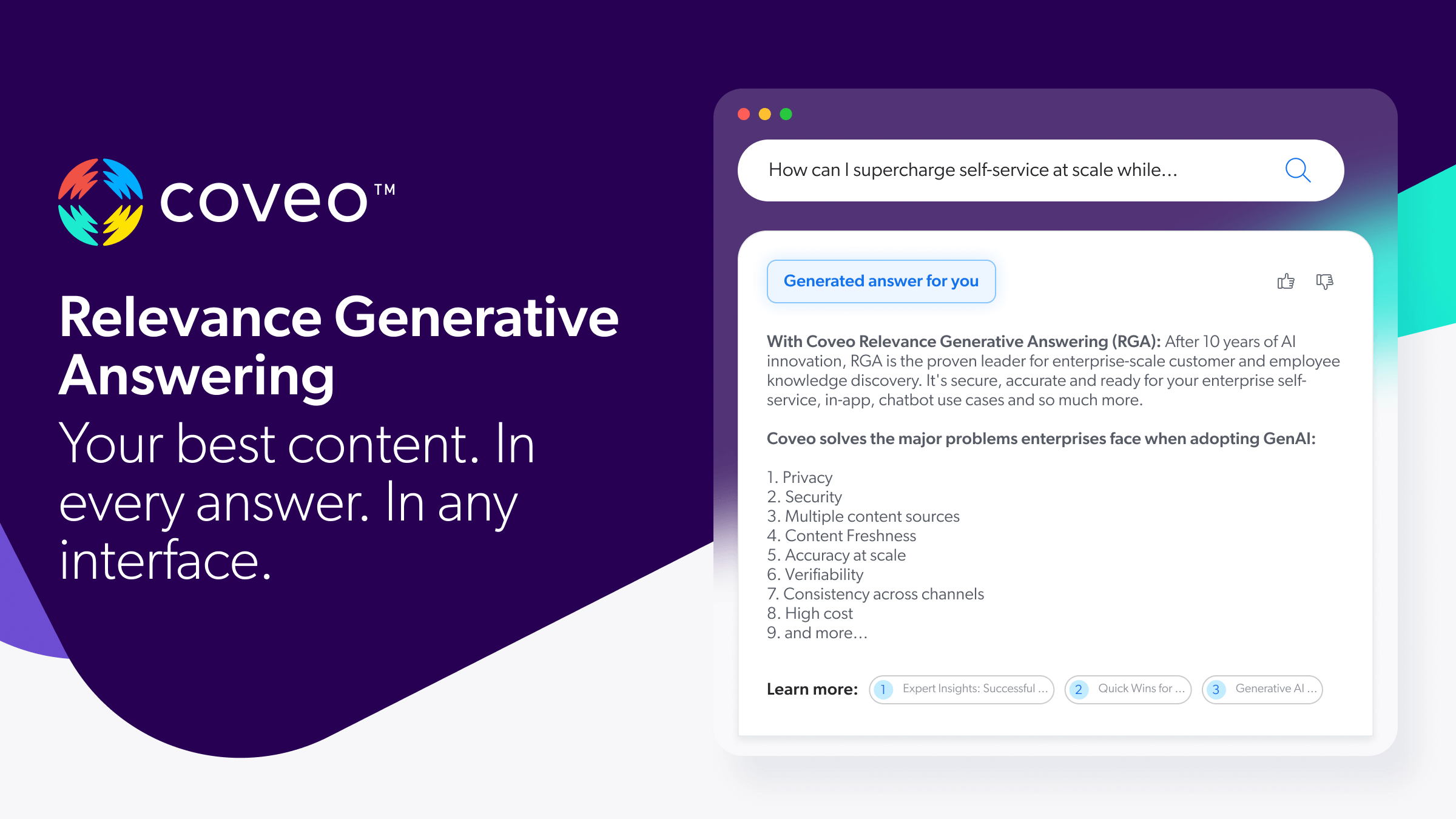 This is where Coveo steps in. Unlike traditional search engines that rely heavily on keyword matching, Coveo's platform uses sophisticated machine learning models to understand user intent, context, and behavior. It aggregates information securely from various internal and external sources, providing a unified search experience that delivers the single most relevant answer, not just a list of possible links.