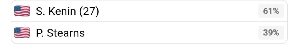 Stearns will certainly win a set. Her aggressive style will likely overwhelm Kenin early on, securing the first set, perhaps even via a close tiebreak. However, Kenin's unmatched defensive tenacity and ability to adjust mid-match will allow her to solve the Stearns puzzle by the second set. As fatigue sets in during the third, Kenin's flat hitting—which minimizes physical effort compared to Stearns' heavy topspin—will prove advantageous.