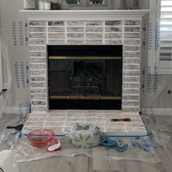 - Protect the Floor: Lay down drop cloths, securing them with painter's tape to the base of the fireplace.