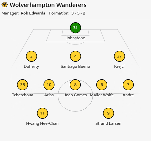- Defense (Back Four): Nelson Semedo, Craig Dawson, Max Kilman, Rayan Aït-Nouri. (A strong, familiar central pairing is chosen to handle the physical challenge posed by the visitors.)