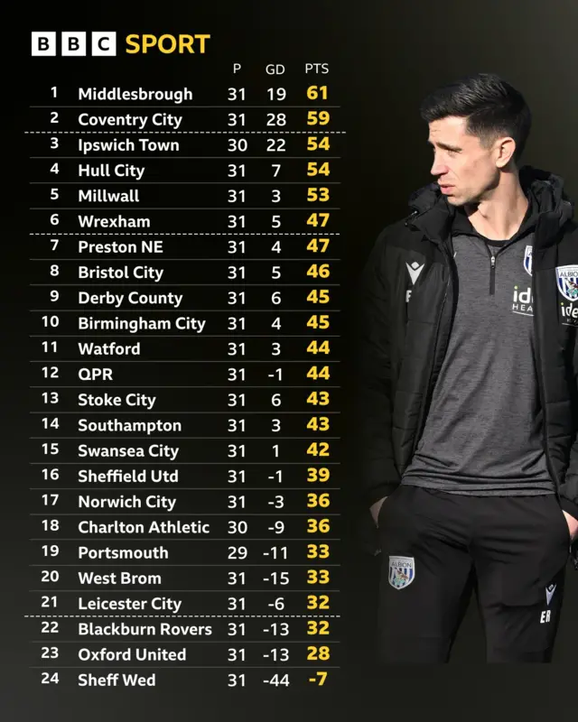- **Play-Off Picture Tightens:** The draw between Birmingham and West Brom means the cluster of teams fighting for 6th and 7th remains incredibly dense, with no clear favorite pulling away.